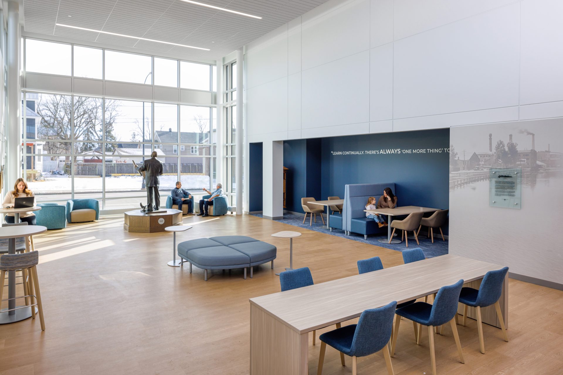 2025: The Elisha D. Smith Library underwent an 8 million dollar renovation from June 2024-February 2025 thanks to generous private donors, including the Smith family and the Menasha Corporation. Additions included moving SMITHworks, the library’s makerspace, to the main floor, 6 new meeting rooms, a Teen Space room, a teaching kitchen in the lower level Company E Room, an outdoor patio area, and an expanded entrance area.